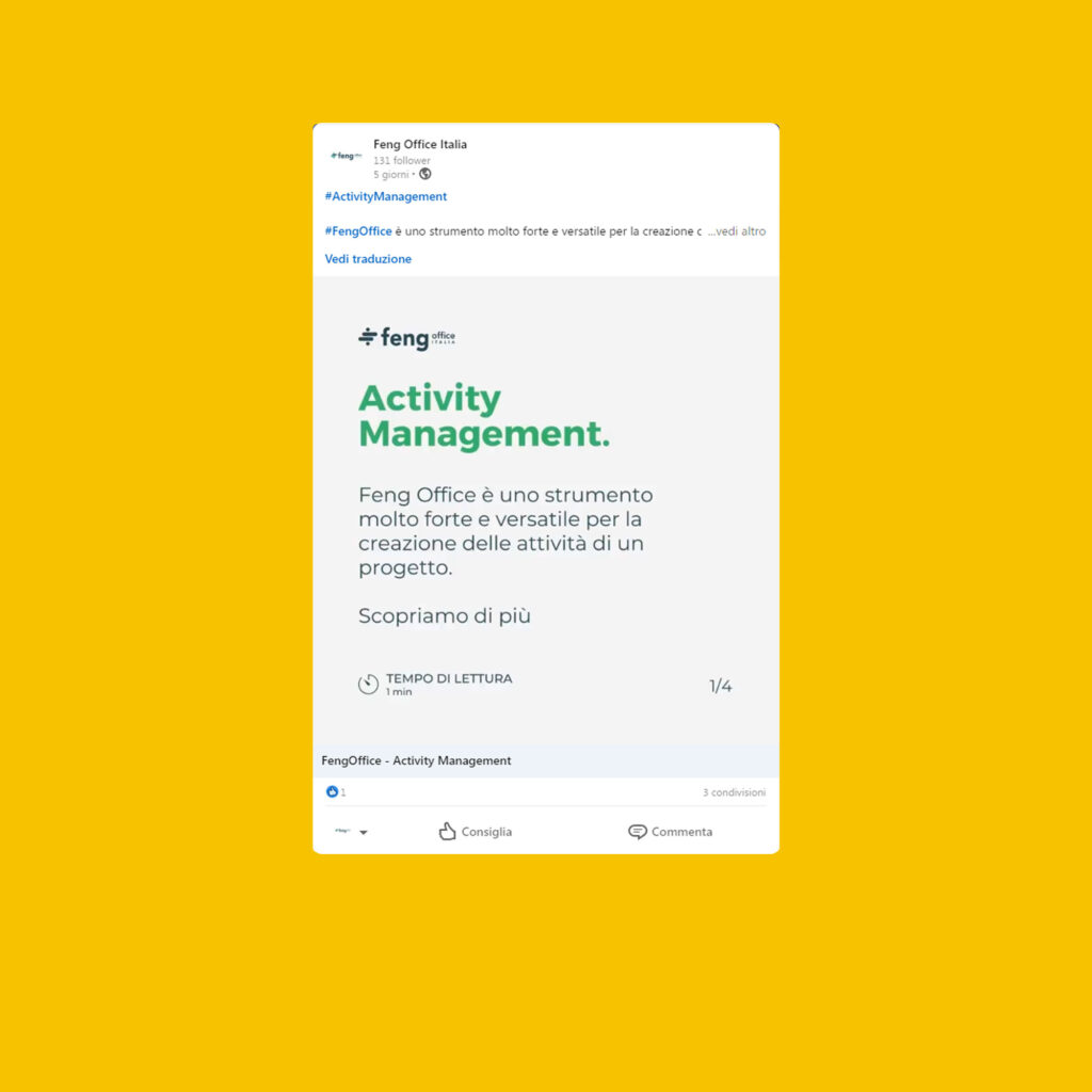 Gestione della pagina Linkedin Italiana del software di project management Feng Office. Stiamo mantenendo attiva la pagina Linkedin con mini tutorial e pillole su come utilizzare il software e su come può aiutare la tua attività ad essere più organizzata e risparmiare tempo.